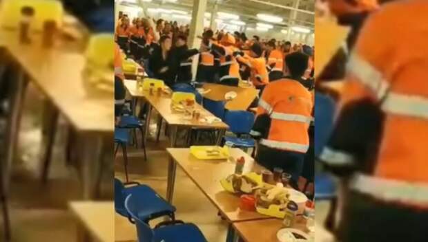 Восемь человек задержали после массовой драки в столовой на стройке Амурского газоперерабатывающего завода "Сила Сибири". Один из рабочих снял побоище на видео.