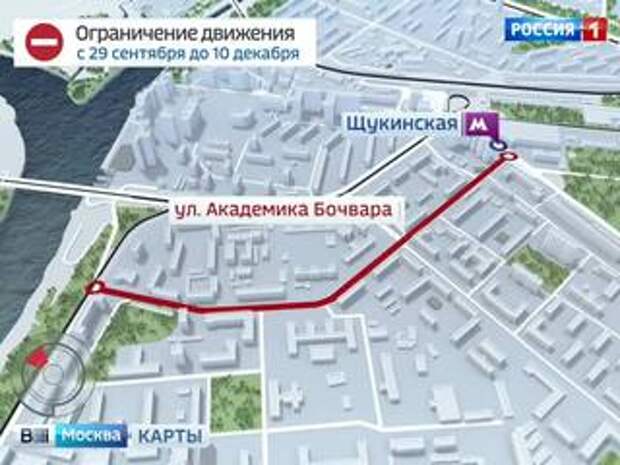 C 29 сентября ограничивается движение на улице академика Бочвара на северо-западе Москвы. Связано это с проведением работ на инженерных сетях. До 10 декабря будет полностью перекрыта одна полоса проезжей части на участке между домами номер 10 и 12.